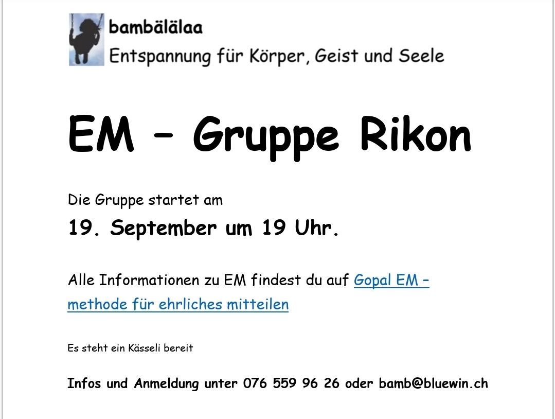 Am Freitag, 19. September um 19 Uhr startet die Gruppe "EM". Ich freue mich sehr auf dieses Angebot.