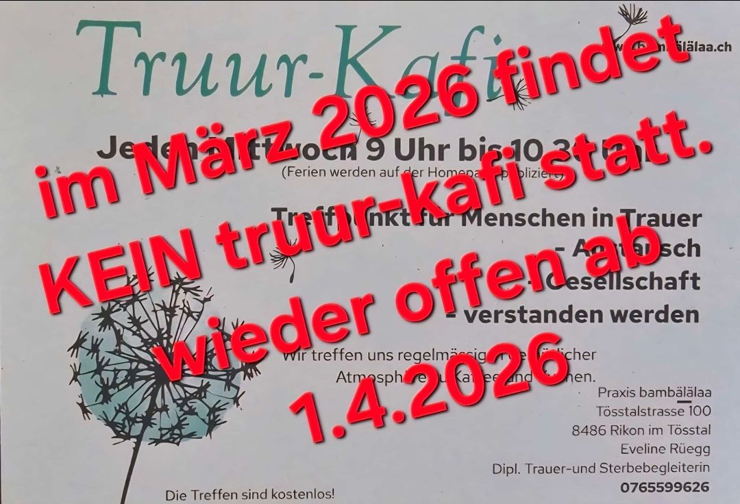 ACHTUNG! IM MÄRZ 2026 FINDET KEIN TRUUR-KAFI STATT!