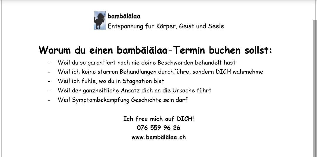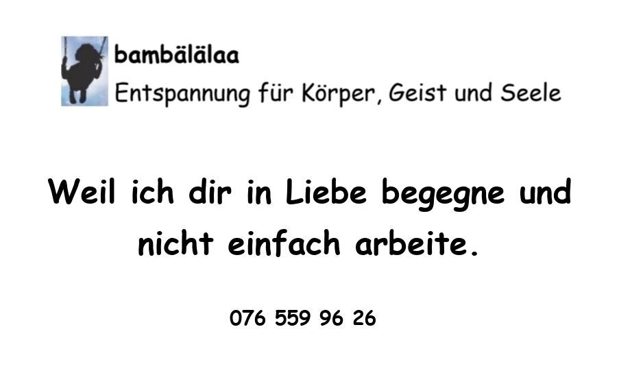 (Es bestehen Wartezeiten. Melde Dich deshalb bitte frühzeitig für einen Termin an. +41 76 559 96 26)